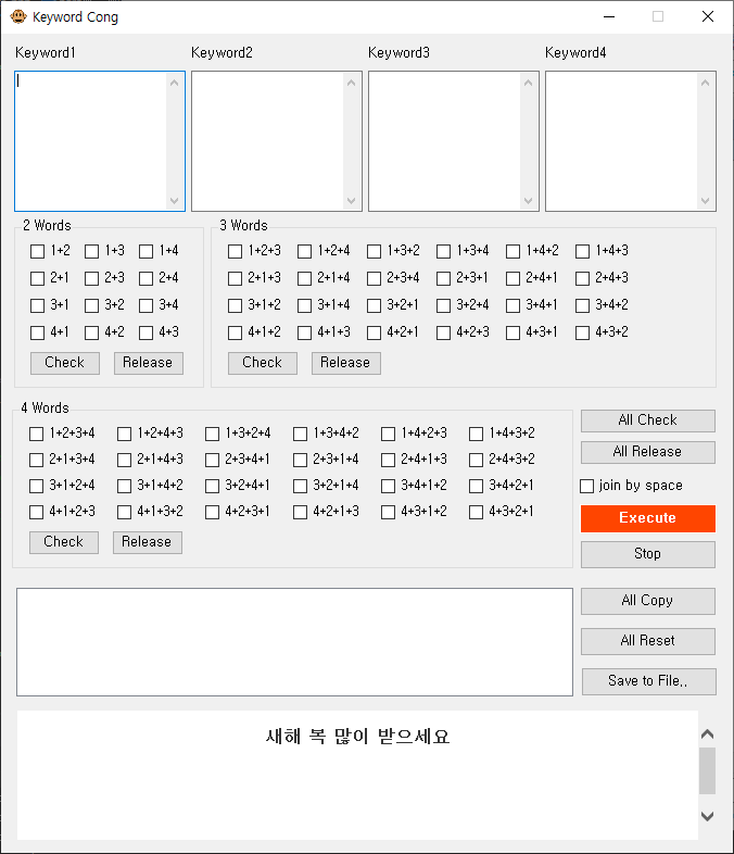 유용한프로그램 간편한 무료 키워드조합기 너구리안주 2019. 12. 31. 14:05 간편한 무료키워드조합기입니다.키워드 마케팅 하시는분들에게 유용할겁니다.설치 필요없이 바로 실행됩니다.끗~ 다운로드: KeywordCong.zip 0.02MB 공유하기 게시글 관리 플밍 '유용한프로그램' Related Articles 쿠팡파트너스 자동 포스팅 - 글봇 쿠팡파트너스 수익(자동수익)후기 쿠팡파트너스 블로그 자동포스팅 무료 홈페이지 빌더 다운로드하세요