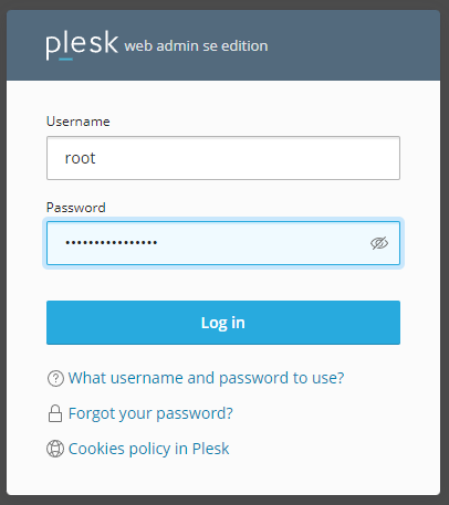 Username 은 root, Password 에는 좀 전에 복사해 둔 비밀번호를 붙여넣고 [Log in] 버튼을 누릅니다.