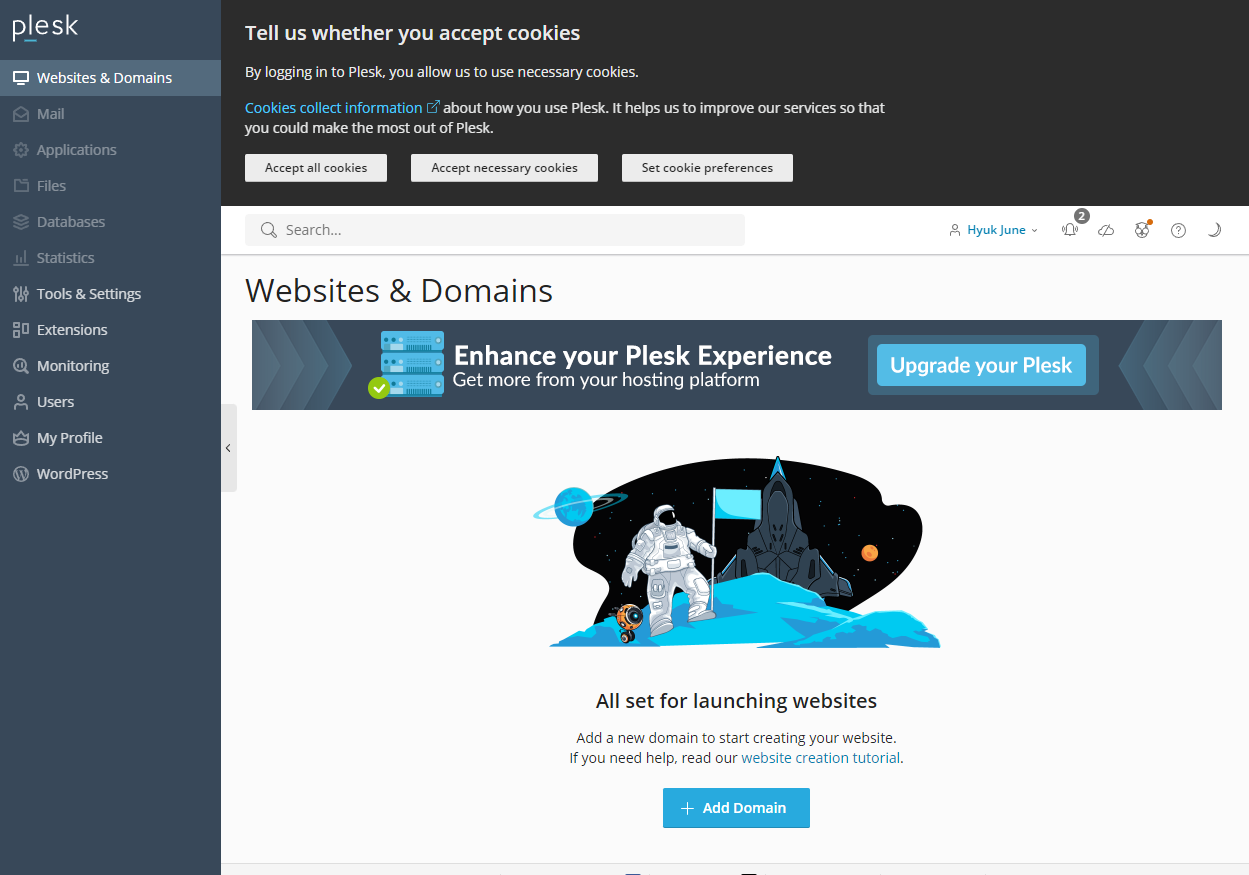 설정이 완료되면 plesk 기본화면이 뜹니다.