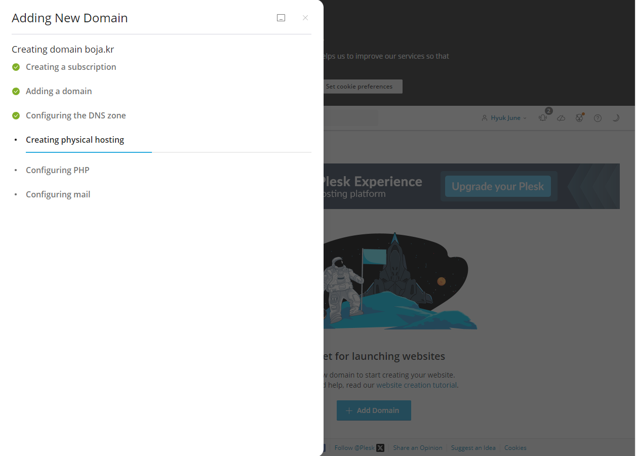 Plesk 패널과 웹서버등의 설정이 자동으로 이루어집니다.