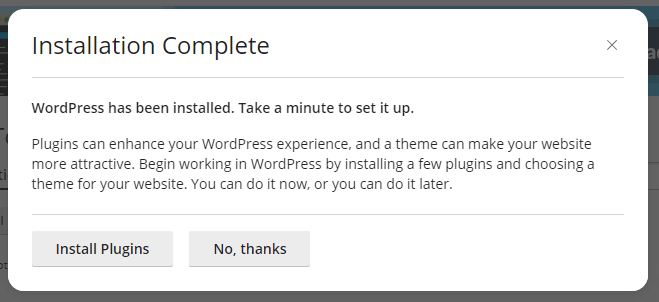 설치가 완료되었습니다. 플러그인을 설치할거냐고 묻는데 일단은 [No, thanks]를 눌러줍니다.