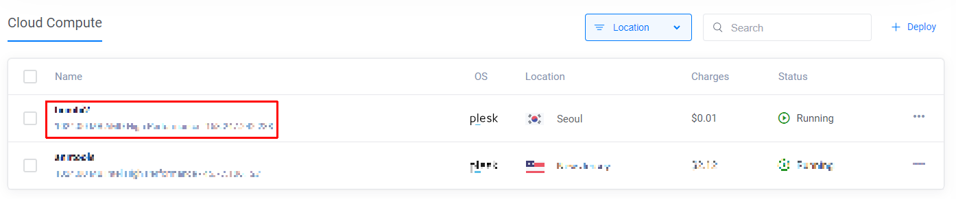 생성한 서버의 Status 가 Running 상태가 되면 서버이름을 눌러서 상세정보 화면으로 들어갑니다.