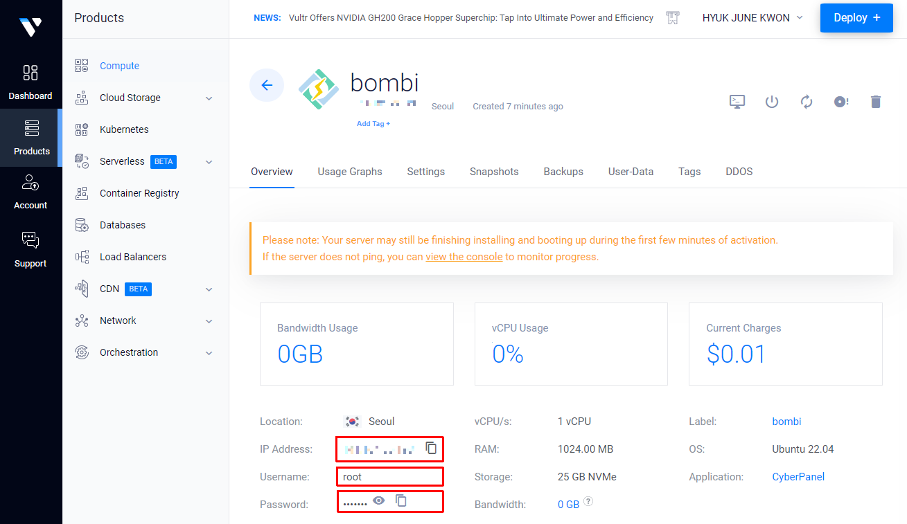 vultr 에서 CyberPanel로 워드프레스 설치하기 - 01